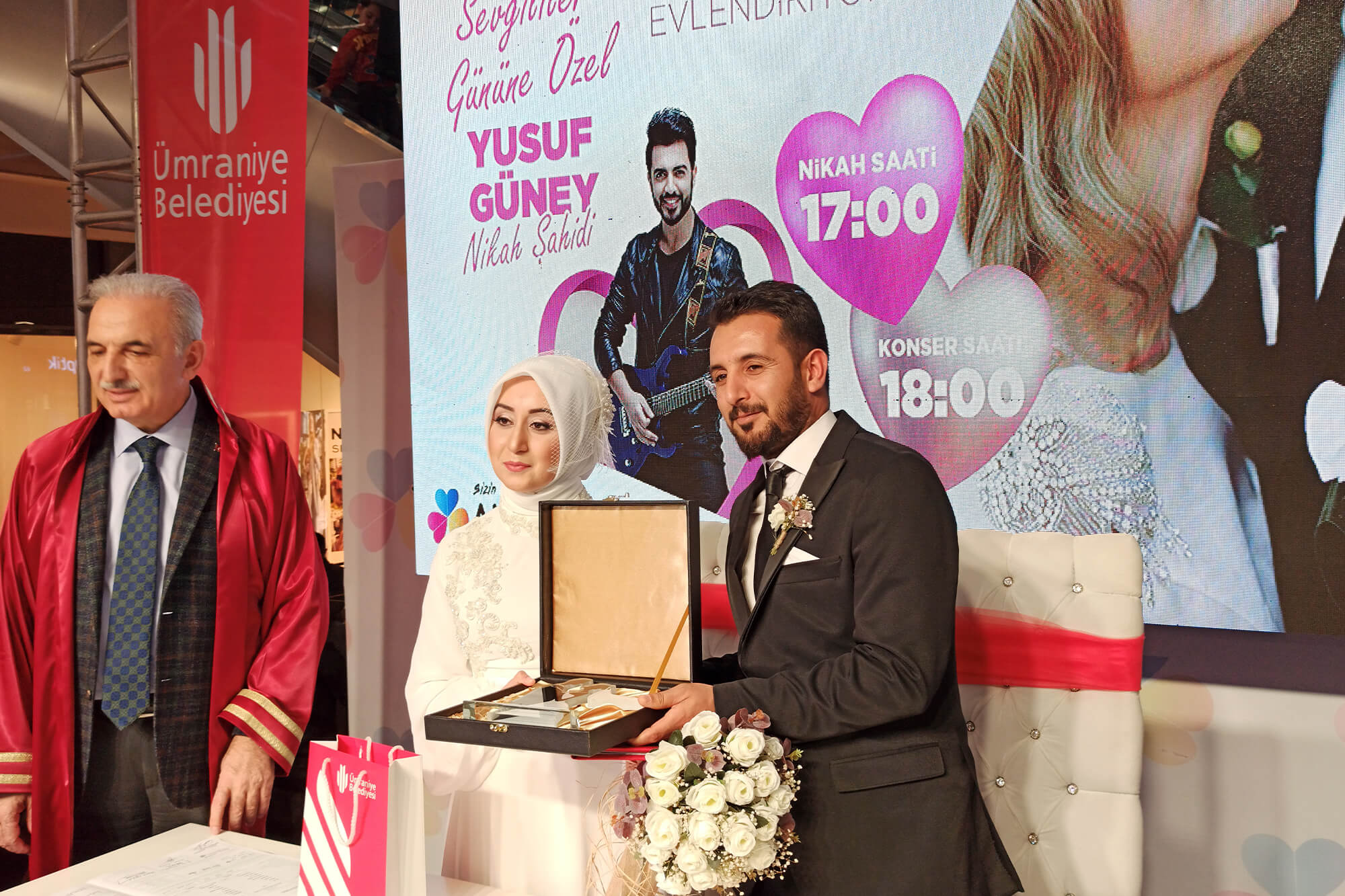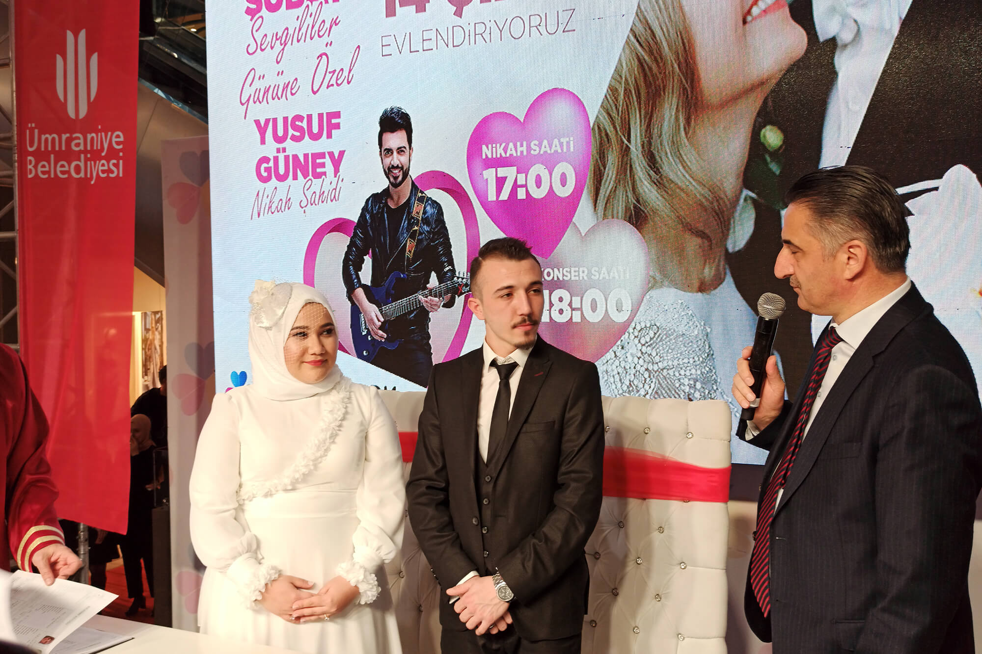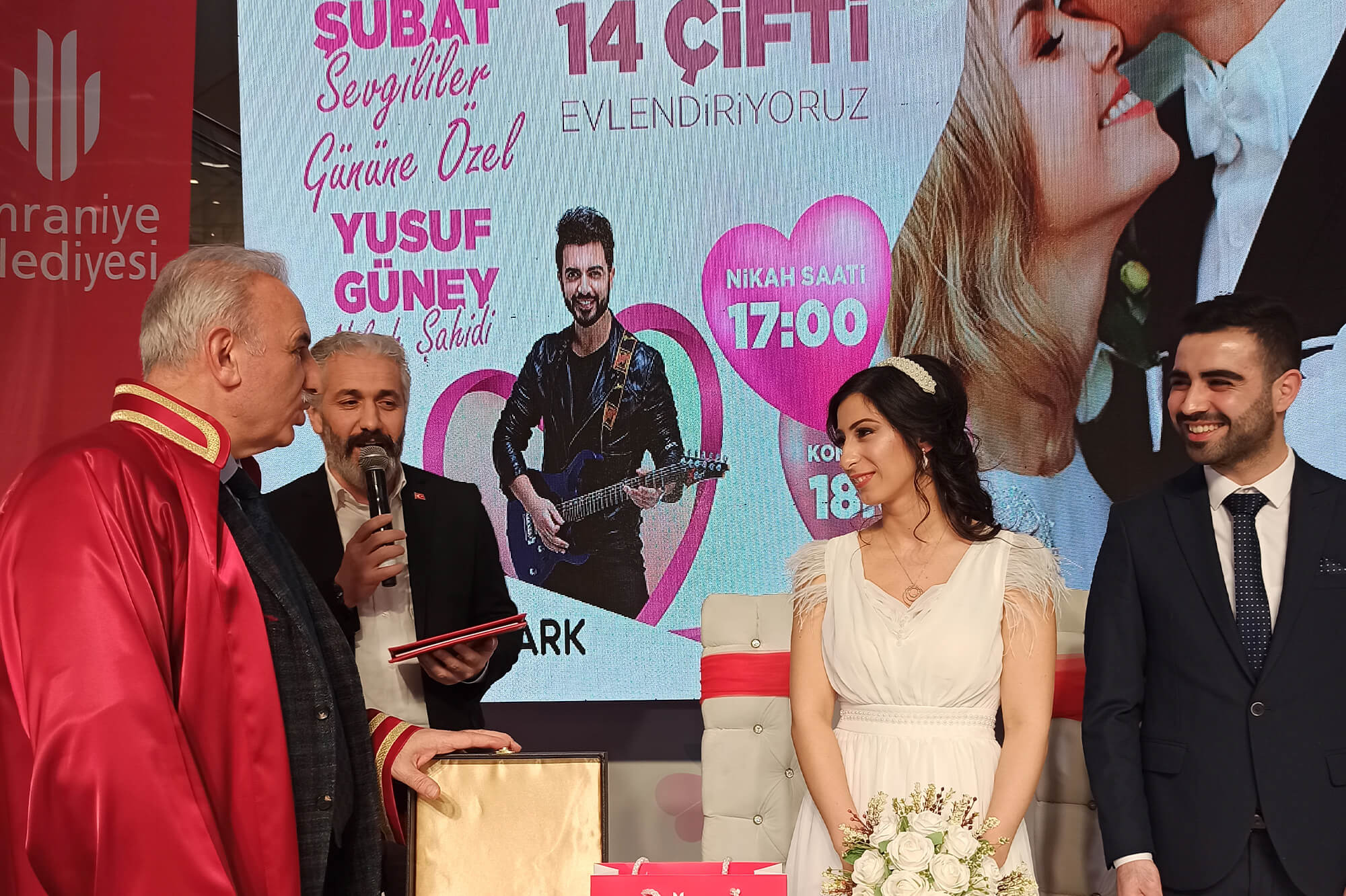 Aşk, sevgi, birliktelik, mutluk, kısacası güzel olan her duygunun yaşandığı bu günde evlenmek isteyen 14 çiftimizi bu güzel günde Ümraniye Belediyemizin katkılarıyla ve belediye başkanımızın katılımıyla evlendiriyoruz. Onların bu mutluluğuna şahit olmak ve bu güzel günlerinde yanında olmak isteyen herkesi bekliyoruz, Ayrıca sizin içinde bir konser süprizimiz var.